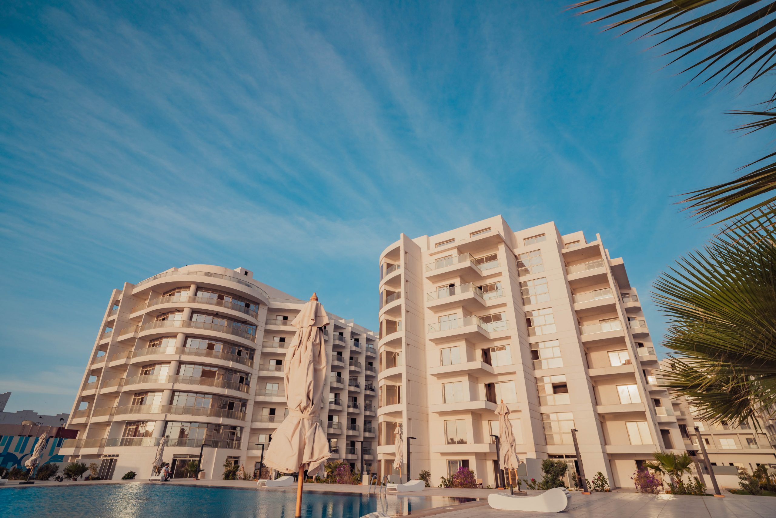 Built over 10,500 sqm, this beachfront resort combines modern architectural design with luxury hospitality, offering sea view apartments in Hurghada and hotel suites with outstanding investment potential.